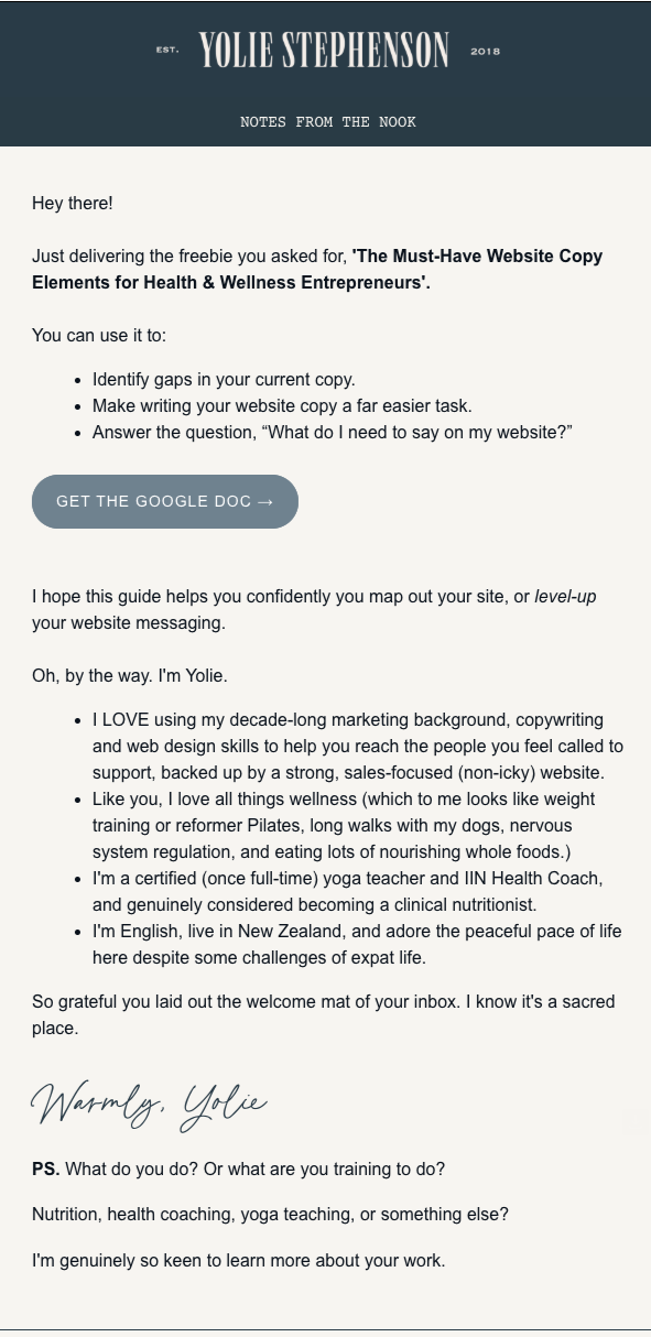 I’ve 10 years of experience in digital marketing and conversion copywriting (including in-house with a major yoga studio and a business mentor for health coaches).